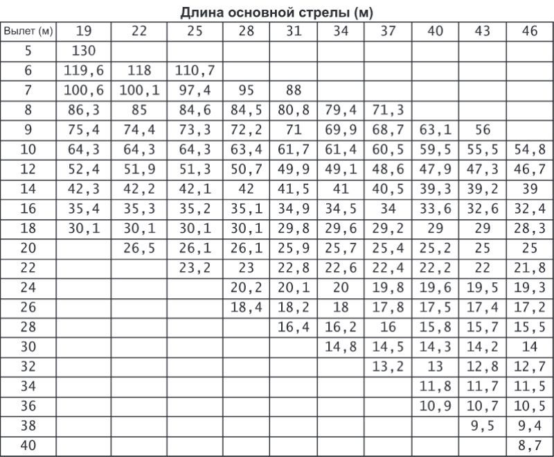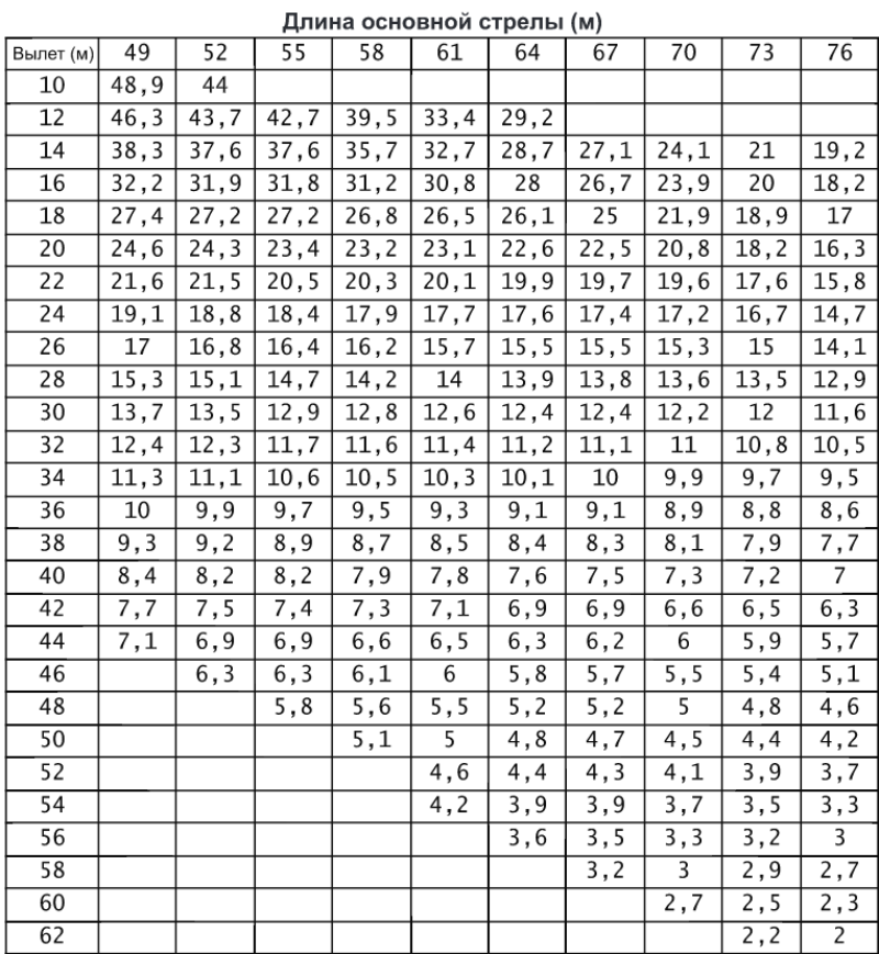 Длина основной стрелы (S): 19~76 м |