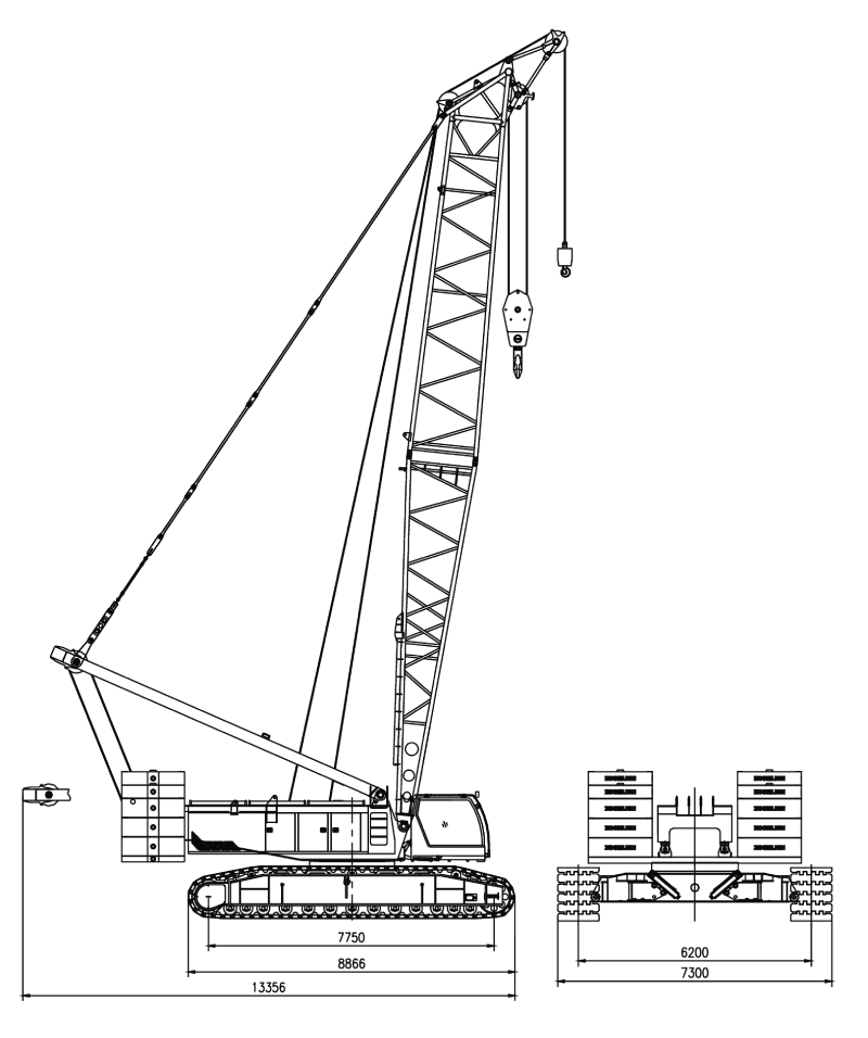 Колея x длина гусеницы x ширина гусеницы 6200 x 7750 x 1100 мм