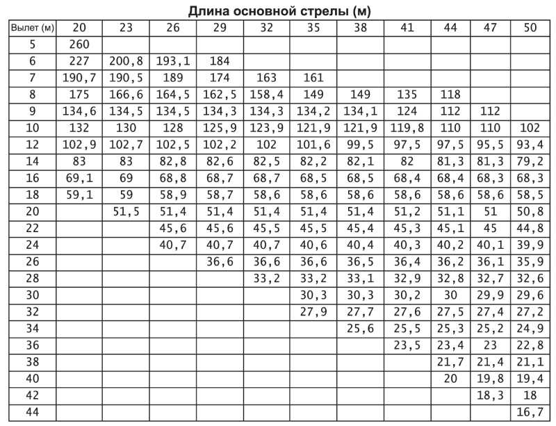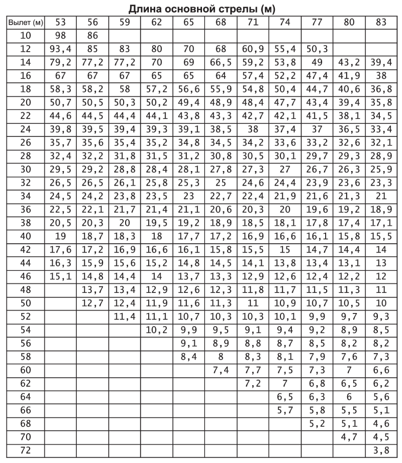| Длина основной стрелы (S) | 20~83 м |